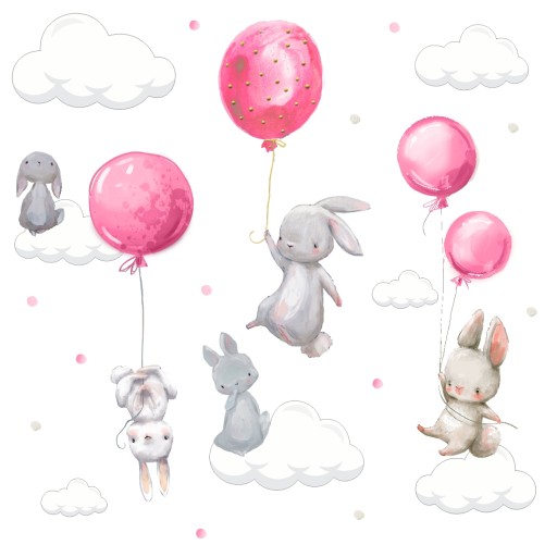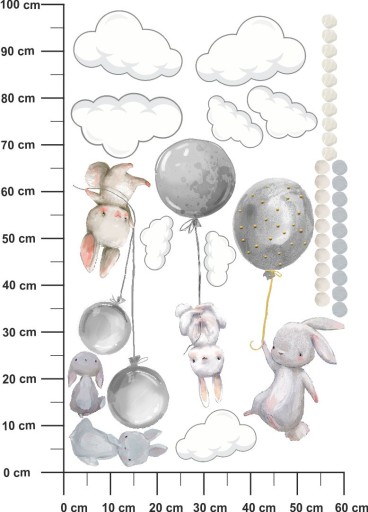 НАКЛЕЙКИ НА НАСТЕНУ КРОЛИК ШАРИКИ В ТОЧКИ 100x60