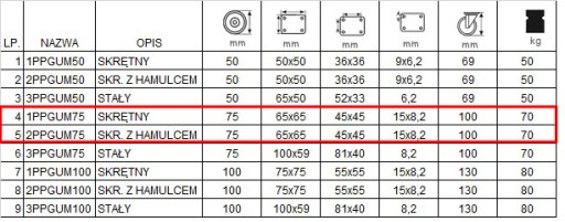 -Rozmiar koła: 75 mm