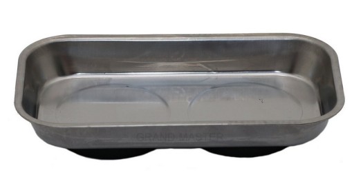 Miska magnetyczna prostokątna o rozmiarze 240x140mm służy do utrzymania w jednym miejscu nakrętek, śrub i innych warsztatowych elementów. Posiada mocne dwa magnesy zalane powłoką gumowa.