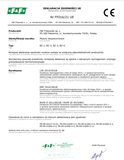 Moduł bezpiecznikowy służy do zabezpieczenia odbiorników elektrycznych przed skutkami wzrostu prądu ponad wartość nominalną prądu zabezpieczanego odbiornika.