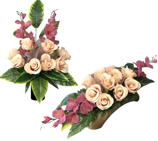 STROIK NAGROBNY ZE SZTUCZNYCH KWIATÓW + BUKIET DO WAZONU 2w1