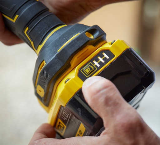 - Dzięki udoskonalonej technologii akumulatorowej, brakowi efektu pamięci i minimalnemu poziomowi samoczynnego rozładowywania, litowo-jonowy akumulator V20 jest gotowy do pracy, kiedykolwiek zechcesz i gdziekolwiek musisz działać, a dodatkowo zapewnia dłuższą pracę narzędzia.