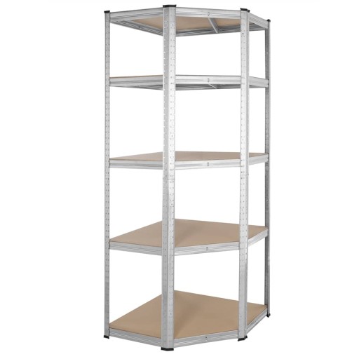 Regał pozwala optymalnie wykorzystać narożniki. Regał magazynowy wykonany jest z wysokiej jakości stali ocynkowanej. Rozpórki półek zapewniają dużą stabilność. Półka ma łączną nośność 875 kg. Gumowe ochraniacze na stopkach zabezpieczają podłoże. Półki z MDF o grubości 5 mm można dowolnie konfigurować mocować i zdejmować. W połączeniu ze zmiennym systemem wtykowym ramy można indywidualnie określić wysokość półki - szybko przebudowany regał mieści się pod schodami lub skośnym sufitem. Uwaga: Aby zapewnić dodatkową stabilność, możesz przymocować półkę do ściany za pomocą śrub.