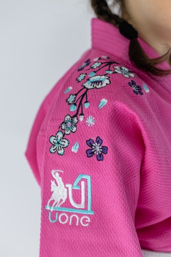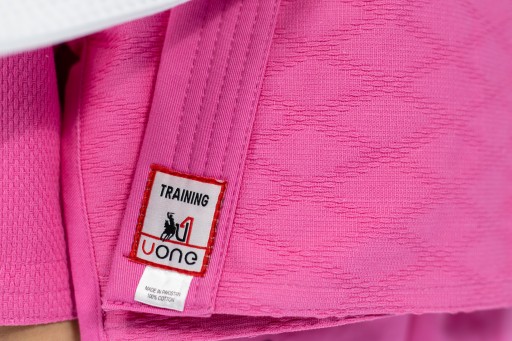 Judoga Uone 350 gsm różowa dla dziewczynki to awangardowy i dość nietypowy strój do judo i ju jitsu dla najmłodszych adeptów szarpanych sztuk walki, ze względu na rozmiary oraz grafikę, w której jest dostępna. Wprowadzając tą judogę chcieliśmy zachęcić do treningów maksymalnie dużą rzeszę dzieci, z których miejmy nadzieje w przyszłości narodzą się przyszli Mistrzowie Olimpijscy :) Judoga jest judogą treningową, z możliwością startu na zawodach (po dopuszczeniu przez regulamin imprezy).