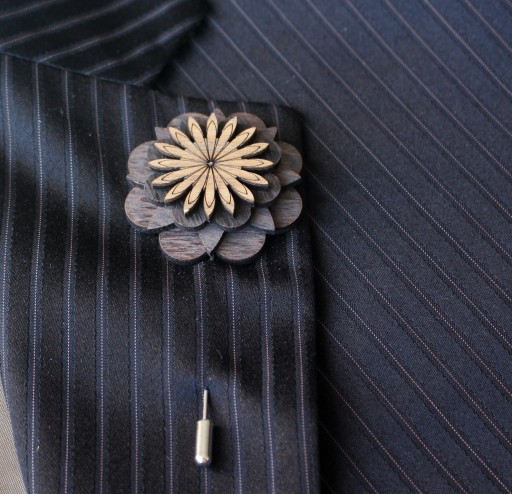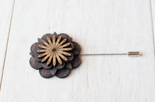 Wpinka w klapie marynarki, stanowi idealne uzupełnienie do drewnianych spinek do mankietów oraz drewnianej muszki. Może być również piękną ozdobą damskiego sweterka lub bluzeczki