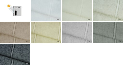 LETNI DOMEK - Delikatna tkanina transparentna charakteryzująca się rzadkim splotem oraz ozdobnymi paskami (szerokość wzoru 11,7 cm). Stonowane kolory oraz duża przepuszczalność światła pomaga rozjaśnić wnętrze.