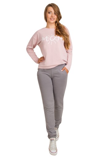 Spodnie ciążowe, dresowe ze specjalnym bezuciskowym panelem o średniej wysokości- idealne rozwiązanie od pierwszych tygodni ciąży na późniejsze miesiące lub dla mam, które nie preferują wysokich paneli ciążowych.