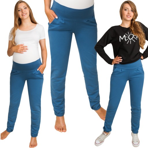 Spodnie ciążowe, dresowe ze specjalnym bezuciskowym panelem o średniej wysokości- idealne rozwiązanie od pierwszych tygodni ciąży na późniejsze miesiące lub dla mam, które nie preferują wysokich paneli ciążowych.