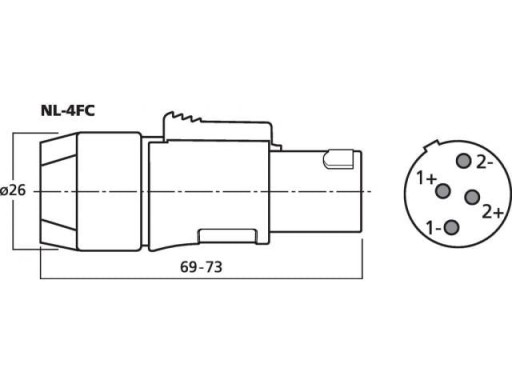 NEUTRIK NL4FC Profesjonalne, solidnie wykonane, złącze Speakon marki NEUTRIK. Złącza Speakon stosowane są głównie w profesjonalnym sprzęcie audio do podłączania głośników pasywnych ze wzmacniaczem mocy. Wyposażone zostały w system blokujący.