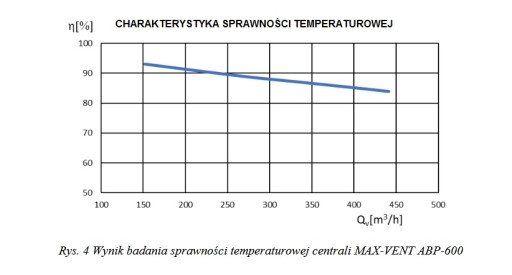 - SPRAWNOŚĆ REKUPERATORA OD 65% do 92% (parametr zależy od różnicy temp.przepływu )