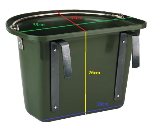 Pojemnik na paszę, wiadro do karmienia i pojenia koni, cieląt z pałąkiem i hakami