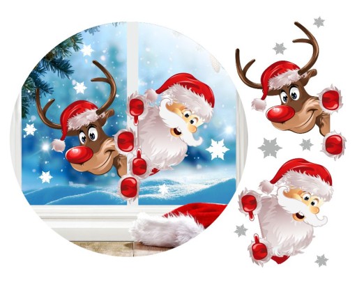 MIKOŁAJ I RENIFER Naklejki na okno święta 50x35cm
