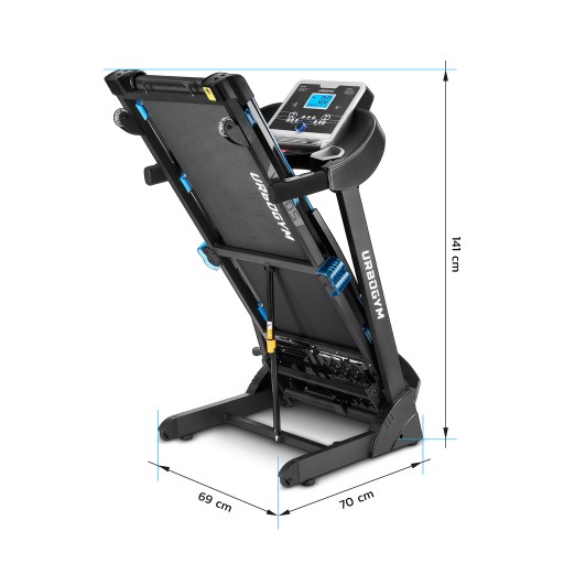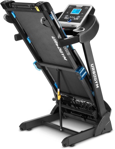 Co jest niezwykle istotne, sprzedawana przez nas bieżnia posiada unikalny system podnoszenia na gazowym siłowniku, dzięki czemu po złożeniu zajmuje zaledwie jeden metr kwadratowy! Rozłożenie bieżni do użytku to tylko jedno kliknięcie. Całość trwa kilkanaście sekund. Poniżej prezentacja mechanizmu.