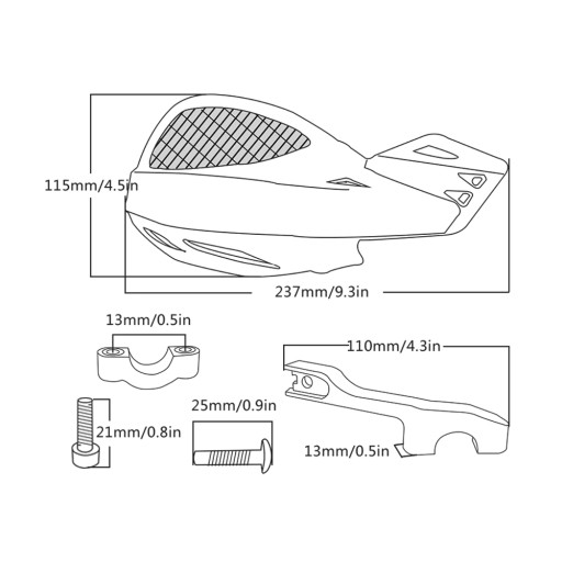 Handbary mają za zadanie ochraniać dłonie przed wiatrem i deszczem. Osłony są idealnie dopasowane do dłoni. Wykonane z materiału odpornego na pęknięcia. Pasują do wszystkich motocykli – sportowe, turystyczne, enduro, cross, naked a także do quadów i skuterów. W zestawie znajdują się elementy potrzebne do montażu.