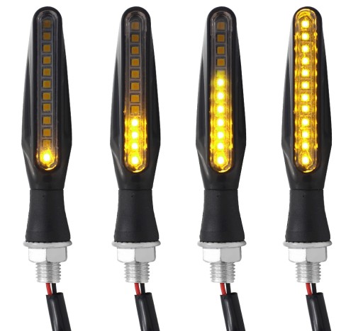 W jednym kierunkowskazie zastosowano 12 punktów LED które świecą w charakterystyczny sposób sprawiając wrażenie płynącego światła kierunkowskazu.