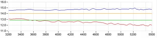 Niebieska linia na wykresie obok prezentuje AFR dla motocykla seryjnego. Czerwona linia prezentuje AFR po instalacji modułu Rapid Bike Easy. Dzięki instalacji modułu skład mieszanki został zoptymalizowany pod kątem efektywności pracy silnika.