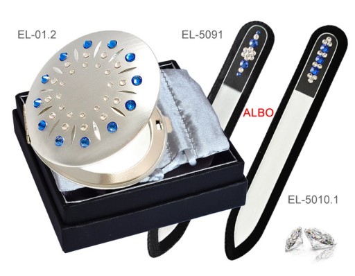 Zestaw kosmetyczny lusterko+2pilniki Blue Swarovski Granatowy prezent