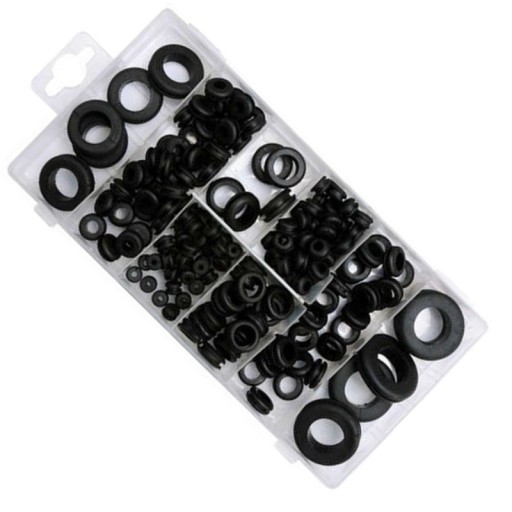- Zestaw przelotek gumowych zawiera 180 sztuk w rożnym rozmiarze.