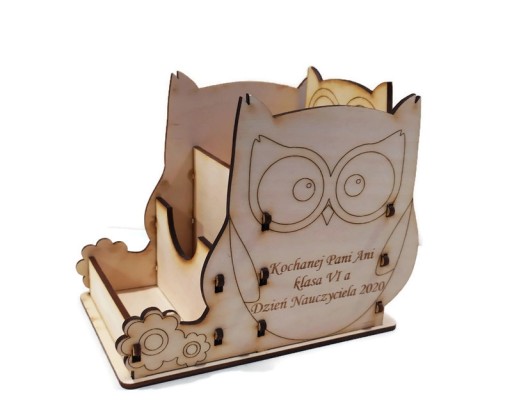 Prezent dla nauczyciela - organizer na biurko w kształcie sowy.