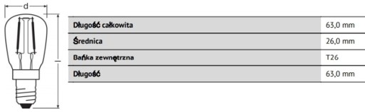 Żarówka LED E14 LODÓWKA filament T26 1,6W = 5W 50l