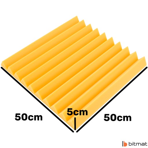 Pianka akustyczna w kształcie klina 50 cm x 50 cm marki Bitmat to bardzo dobry sposób na poprawę akustyki w pomieszczeniach mieszkalnych, biurowych czy salach prób, a także ochrony przed niechcianymi odbiciami dźwięku. Pianka o strukturze otwarto-komórkowej ma za zadanie pochłaniać i rozpraszać fale dźwiękowe, aby zniwelować echo oraz skrócić czas pogłosu. Poza właściwościami akustycznymi oferuje także atrakcyjny wygląd, który będzie pasował do większości pomieszczeń.