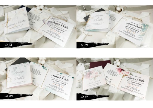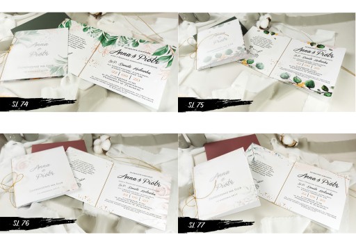- format zaproszeń 14 cm x 14 cm (po rozłożeniu 14 cm x 28 cm)
