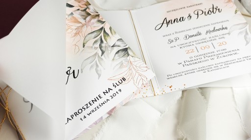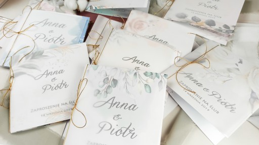 Zaproszenia są bigowane na profesjonalnej maszynie do samodzielnego złożenia wraz z kalką.