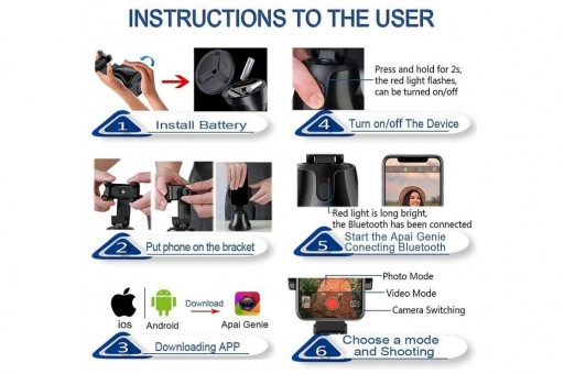 Uchwyt śledzenia twarzy wprowadza technologię AI kompozycji obrazu ludzkiego i szacowania skali do inteligentnego fotografowania, obraca się o 360 stopni i automatycznie rozpoznaje osobę / PET. Kiedy idziesz, telefon komórkowy obraca się tam, gdzie chcesz iść, ustawia pozę i robi zdjęcia automatycznie w ustalonym czasie 3 sekund. Świetne do wykładów, wydarzeń sportowych, prezentacji. Zdjęcia grupowe, zdjęcia przygodowe, Instagram, vlogowanie .