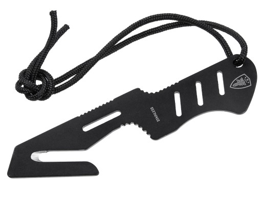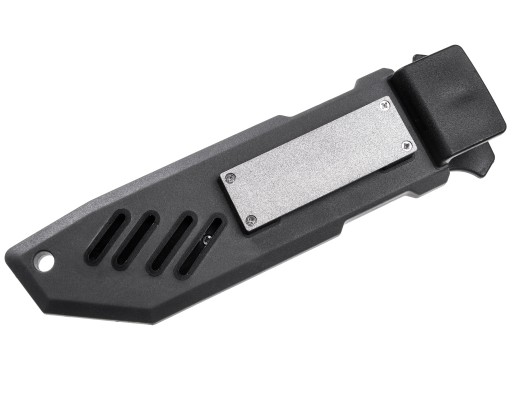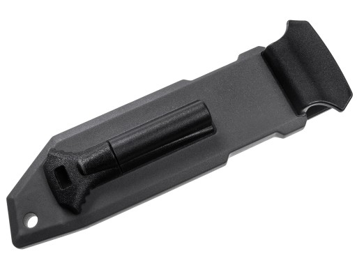 Dodatkowo na zakończeniu rękojeści znajduje się otwór na linkę zabezpieczającą oraz zbijak do szyb.