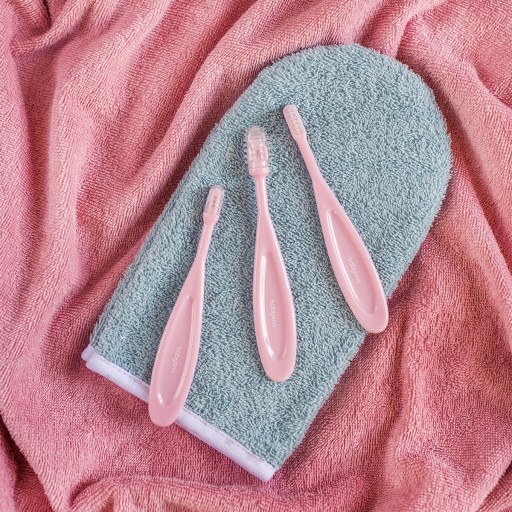 Zestaw delikatnych szczoteczek do zębów jest niezastąpiony w codziennej higienie jamy ustnej dziecka. W zestawie znajdują się 3 szczotki: pierwsza , silikonowa przeznaczona jest do masażu dziąseł, dla dzieci które nie posiadają jeszcze swoich ząbków; druga - silikonowa przeznaczona jest do mycia małych ząbków; trzecia - z miękkim włosiem, przeznaczona dla dzieci starszych. Szczoteczki są idealne do nauki samodzielnego mycia zębów.
