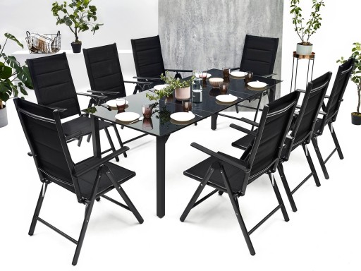 Stół ogrodowy idealny do Twojego ogrodu. Stelaż został podwójnie lakierowany proszkowo, co idealnie przystosowuje ten produkt to zastosowania wewnątrz jak i na zewnątrz. Użyte materiały nie wymagają częstej konserwacji, są odporne na warunki pogodowe i nie wymagają specjalnych środków do pielęgnacji. Nóżki są dodatkowo zaopatrzone w nakładki z tworzywa sztucznego. Stół posiada blat z czarnej hartowanej szyby o gr. 5 mm.