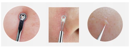 Zaskórniki usuwamy przykładając pętelkę tak, by znalazł się w środku, następnie delikatnie przyciskamy skórę, co sprawi, że zaskórnik zostanie wyciśnięty do góry.