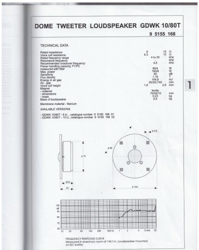 Głośnik wysokotonowy z membraną kopułkową tytanową.
