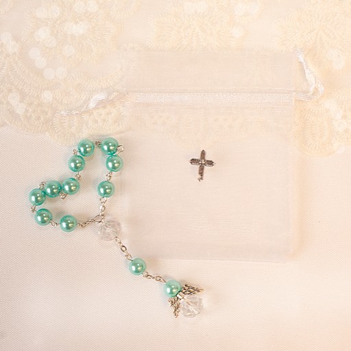 - Do każdego różańca dołączony jest elegancki biały woreczek z organzy ze ściągaczami zamykającymi go.