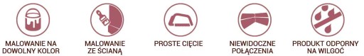 lekka, twarda, odporna na wilgoć, odporna na zmywanie, niepalna oraz nietoksyczna.