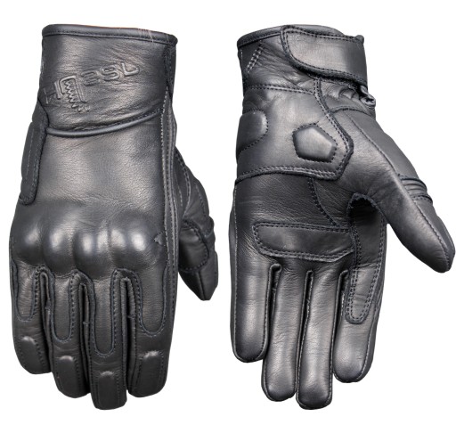Wysokiej jakości rękawice motocyklowe, wyprodukowane z najlepszej jakości skóry bydlęcej z twardym ochraniaczem kostek i mankietem zachodzącym za nadgarstek.