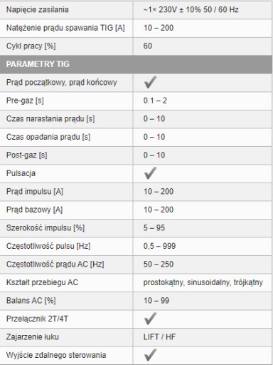 to spawarka inwertorowa w nowoczesnym wydaniu. Umożliwia spawanie TIG AC/DC oraz MMA AC/DC prądem o natężeniu do 200A. Zasilana jest z sieci jednofazowej 230V.