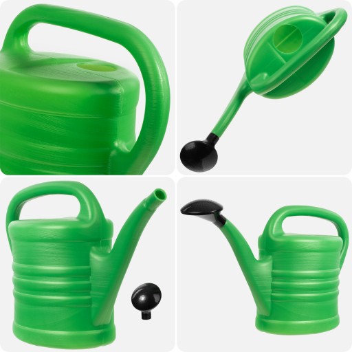 ✅FUNKCJONALNA - Przedmiot dostępny jest w kolorze zielonym i ma pojemność 15, 12, 10, 5 lub 2,5 L. Wachlarz rozmiarów daje możliwość dostosowania konewki do potrzeb i warunków panujących w ogrodzie lub na podwórku. Zielona kolorystyka wpasowuje się w przydomowe otoczenie, a długi lej konewki umożliwi dostarczenie wody każdej roślinie, również w trudno dostępnych miejscach. Sitko i konewka w przypadku zabrudzenia są łatwe do wyczyszczenia. Mocna i odporna na wgniecenia struktura zapewni długie użytkowanie.