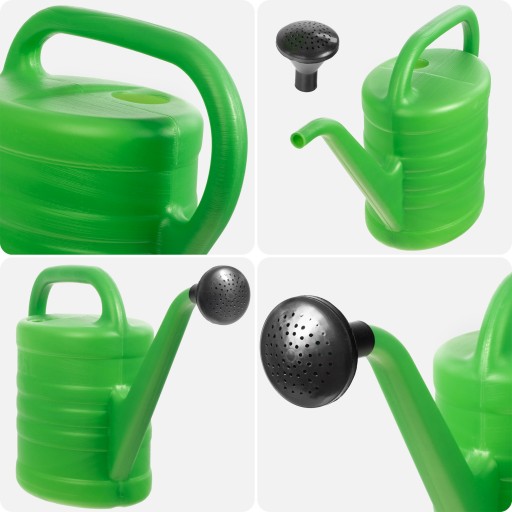 ✅FUNKCJONALNA - Przedmiot dostępny jest w kolorze zielonym i ma pojemność 15, 12, 10, 5 lub 2,5 L. Wachlarz rozmiarów daje możliwość dostosowania konewki do potrzeb i warunków panujących w ogrodzie lub na podwórku. Zielona kolorystyka wpasowuje się w przydomowe otoczenie, a długi lej konewki umożliwi dostarczenie wody każdej roślinie, również w trudno dostępnych miejscach. Sitko i konewka w przypadku zabrudzenia są łatwe do wyczyszczenia. Mocna i odporna na wgniecenia struktura zapewni długie użytkowanie.
