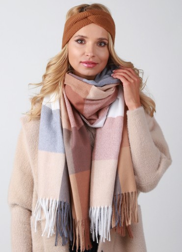 Карамельная женская теплая повязка на голову в стиле БОХО на зиму - О3