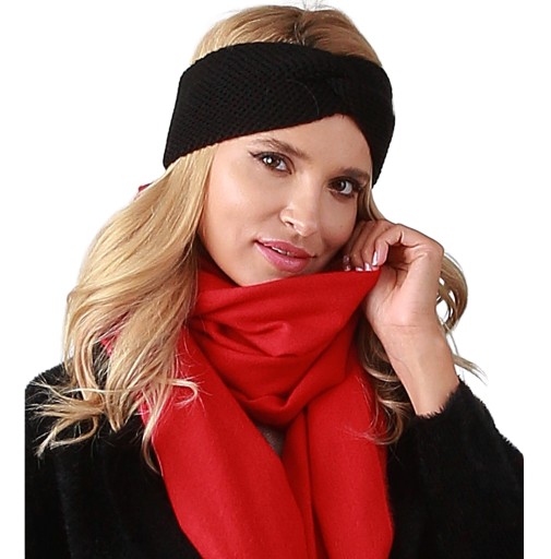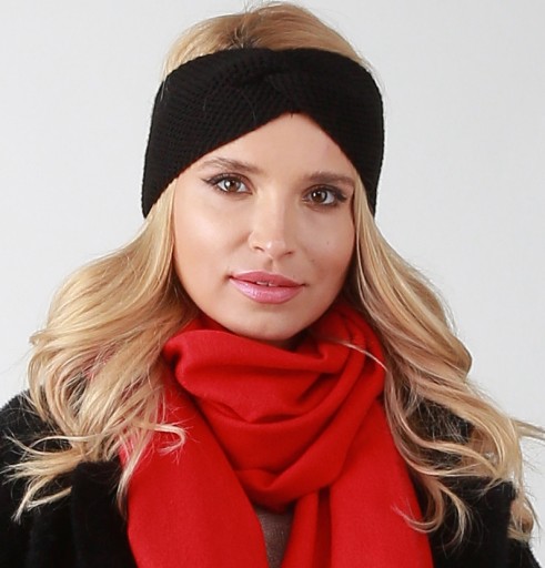 Czarna BOHO OPASKA DAMSKA NA GŁOWĘ USZY ciepła O3