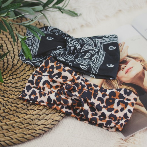 ПОВЯЗКА ДЛЯ ВОЛОС, широкая БАНДАМ, леопардовый узел
