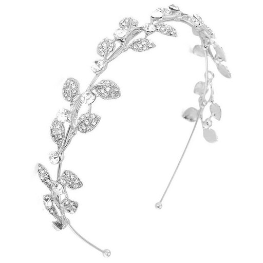 Женская свадебная ОБОДКА ДЛЯ ВОЛОС ЛИСТЬЯ - цвет серебра - стразы свадебные