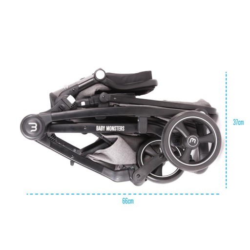 Baby Monsters zadbało nie tylko o wygodę dziecka, ale również o komfort rodzica - łatwe składanie wraz z siedziskiem, niska waga, kompaktowe wymiary oraz możliwość regulacji rączki i pojemny kosz na zakupy sprawiają, że każda podróż, czy to na zakupy, na wakacje, czy po prostu codzienny spacer, jest przyjemnym doznaniem.