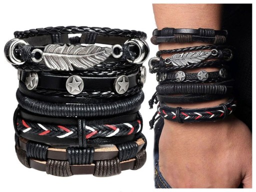 BRANSOLETKA męska SKÓRZANA rzemyk pióro ZESTAW - 34718