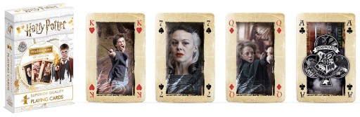 Klasyczna talia składająca się 55 kart z wizerunkami najbardziej znanych postaci z cyklu filmów o Harrym Potterze.