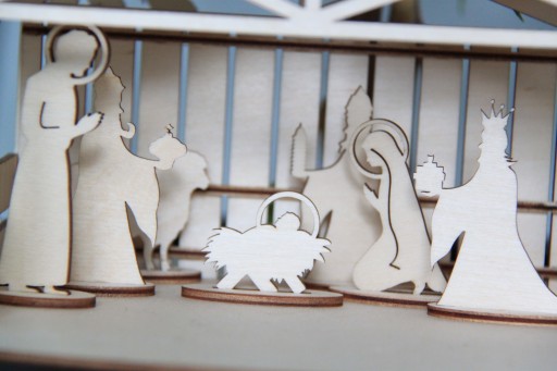 Ozdoby bożonarodzeniowe z drewna są wyjątkowo ładne i trwałe. Delikatna szopka Bożonarodzeniowa będzie wspaniałą dekoracją każdej świątecznej aranżacji. Może znaleźć swoje miejsce pod choinką, na kominku lub w oknie. Ozdobiona dodatkowo lampkami led nabierze wyjątkowego uroku. Szopka wycięta jest metodą cięcia laserowego ze sklejki drewnianej. Jest to kompletna dekoracja z postaciami którą można ją dekorować dowolną metodą lub pozostawić w niezmienionej formie. Sprawdzi się jako prezent dla najbliższych jak i element tegorocznych świątecznych dekoracji w Twoim domu.