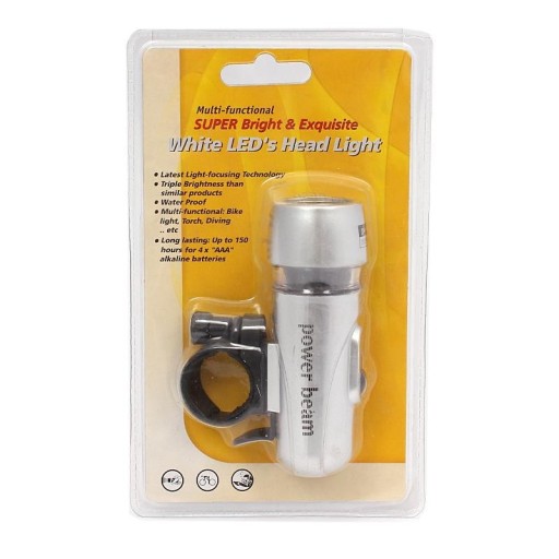 - Może służyć zarówno jako latarka ręczna jak i lampka do roweru.