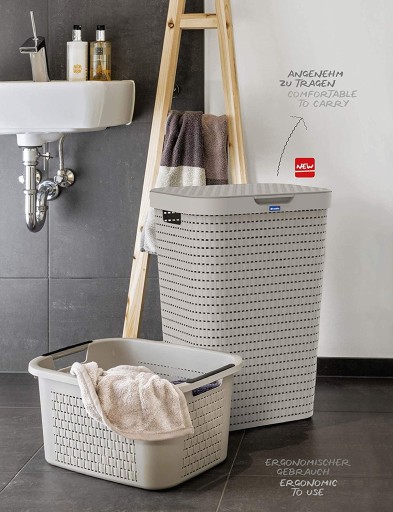 Kosz na bieliznę COUNTRY pomieści do 55 l prania i dzięki wąskiemu kształtowi zajmuje wyjątkowo mało miejsca. Jego ażurowa konstrukcja z rattanu prezentuje się elegancko i nowocześnie, jednocześnie zapewnia cyrkulację powietrza ze wszystkich czterech stron - a tym samym poprawę higieny. Dwa ergonomicznie zaprojektowane uchwyty po bokach umożliwiają łatwy transport pojemnika. Niska waga oraz wysokiej jakości obróbka bez narożników i krawędzi kosza na bieliznę zapewniają optymalny komfort. Kosz na bieliznę COUNTRY jest dostępny w różnych atrakcyjnych kolorach, które można dostosować do każdego otoczenia. Z tym pomocnikiem domowym zbierzesz brudną bieliznę w sposób dyskretny i oszczędzający miejsce!