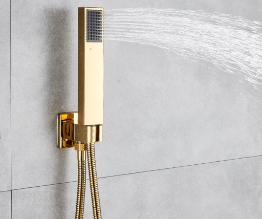 Stylowy i nowoczesny zestaw prysznicowy podtynkowy z deszczownicą, wylewką i słuchawką prysznicową